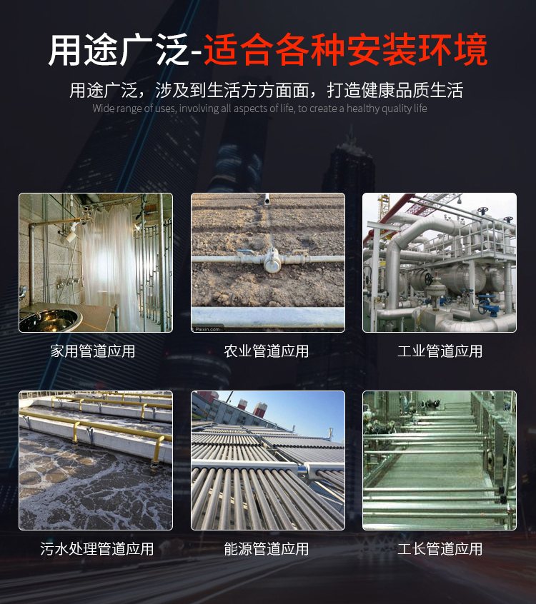 廣泛用于醫(yī)院、酒店、住宅小區(qū)、寫字樓、學校等工程配套管道系統