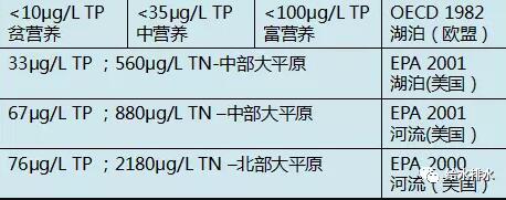 歐美敏感水體的氮、磷監(jiān)測(cè)值