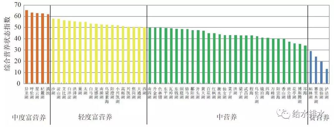 2016年中國(guó)重要湖泊營(yíng)養(yǎng)狀態(tài)比較(中國(guó)環(huán)境狀況公報(bào))