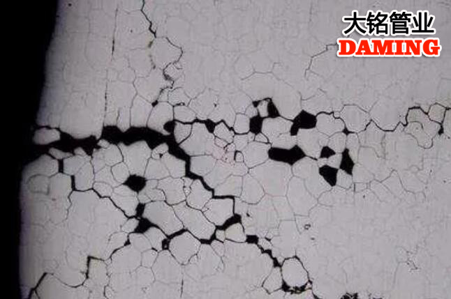 應力腐蝕開裂是奧氏體不銹鋼最常見的破壞形式。大家需要注意,應力腐蝕開裂取決于兩方面主要因素:其一,必須有應力,它可能是外加應力,也可能是殘余應力;其二,應力腐蝕開裂敏感離子,比如鹵族元素離子,尤其以氯離子最為常見。應用奧氏體不銹鋼的地方,時常不是使用其承受應力的能力,因此應該特別關注殘余應力,因為在含有氯離子的環(huán)境中,殘余應力會造成其應力腐蝕開裂。去殘余應力的方法是去應力退火。
