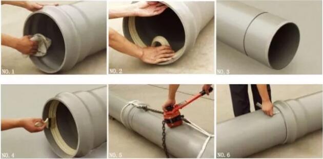 ?。?)在粘接管件前須將承插口的內(nèi)側(cè)和插口外側(cè)擦拭干凈,若表面沾有油污可采用棉紗蘸丙酮等清潔劑擦拭,在操作過(guò)程中需注意保持粘接面潔凈。