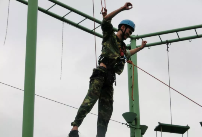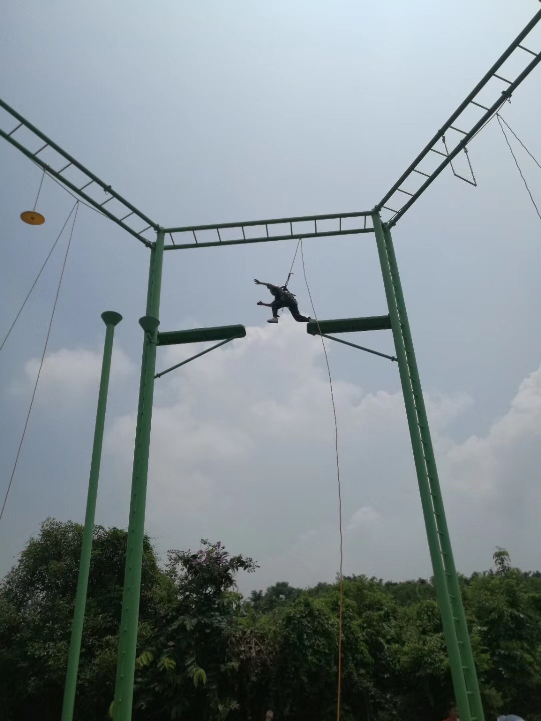 空中單杠是一項(xiàng)自我挑戰(zhàn)的高空高難度項(xiàng)目,隊(duì)員需要在9米高臺(tái),直徑25公分的圓臺(tái)上站立,奮力跳躍抓住空中的單杠。挑戰(zhàn)自我,客服心理障礙,培養(yǎng)自信心。面對(duì)機(jī)遇,能果斷把握,增強(qiáng)自我決斷的能力,以積極冷靜的心態(tài)去爭(zhēng)取。樹(shù)立對(duì)困難、對(duì)問(wèn)題不懼不卻以及挑戰(zhàn)的魄力。
